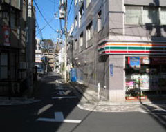 コンビニエンスストアの先の路地を